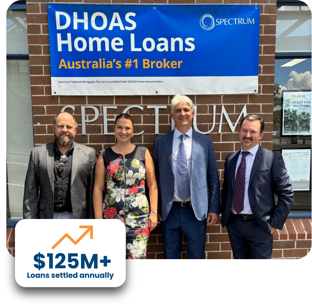 No. Spectrum does not charge client fees. Our service is funded through lender commissions — and you'll receive the same, if not a better, interest rate than going to the bank directly. Specialist Defence support at no upfront cost.